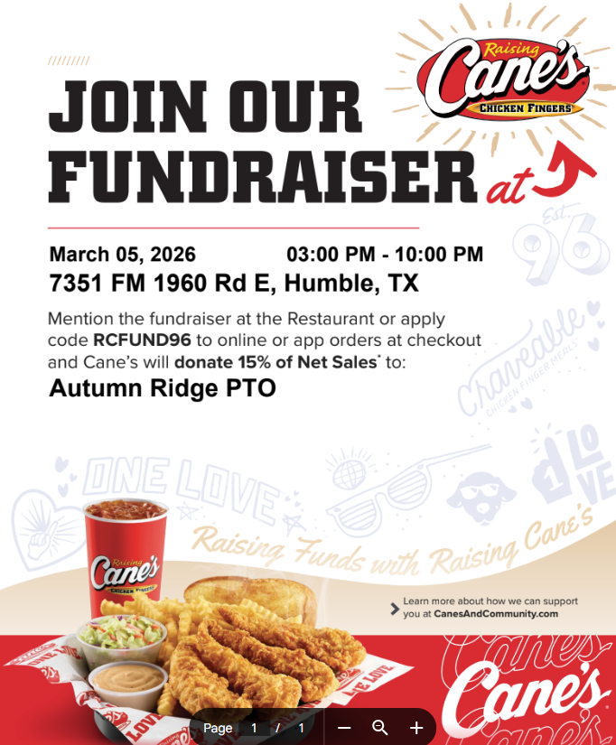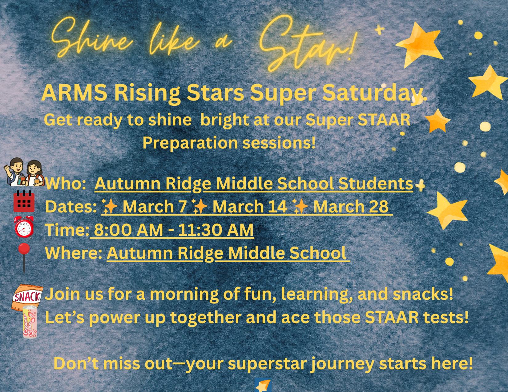 05- Bookfair Starts and Fundraiser at Cane's (check flyer below) 06- ARMS Rising Stars Super Saturday (see flyer for details) 07- Battle of the Books District Competition/Event @Kingwood High(Big Gym) @1:00 PM for Middle Schools and ARMS Rising Stars Super Saturday (check flyer for details) 13- Bookfair Ends 14- ARMS Rising Stars Super Saturday (see flyer below for details) 18- Fundraiser at Sonic (see flyer below for details) 26- Panoramic Photo