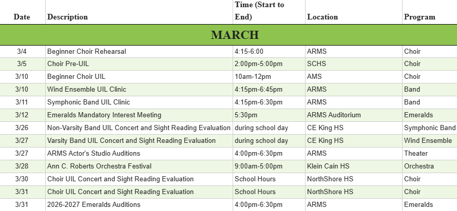 If you have any questions about the fine arts department, please contact Ms. Molander. Her email is Jamee.Molander@humbleisd.net. |