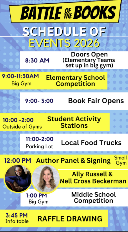 Battle of the Books District Event Middle School's Competition Starts at 1:00 PM! |