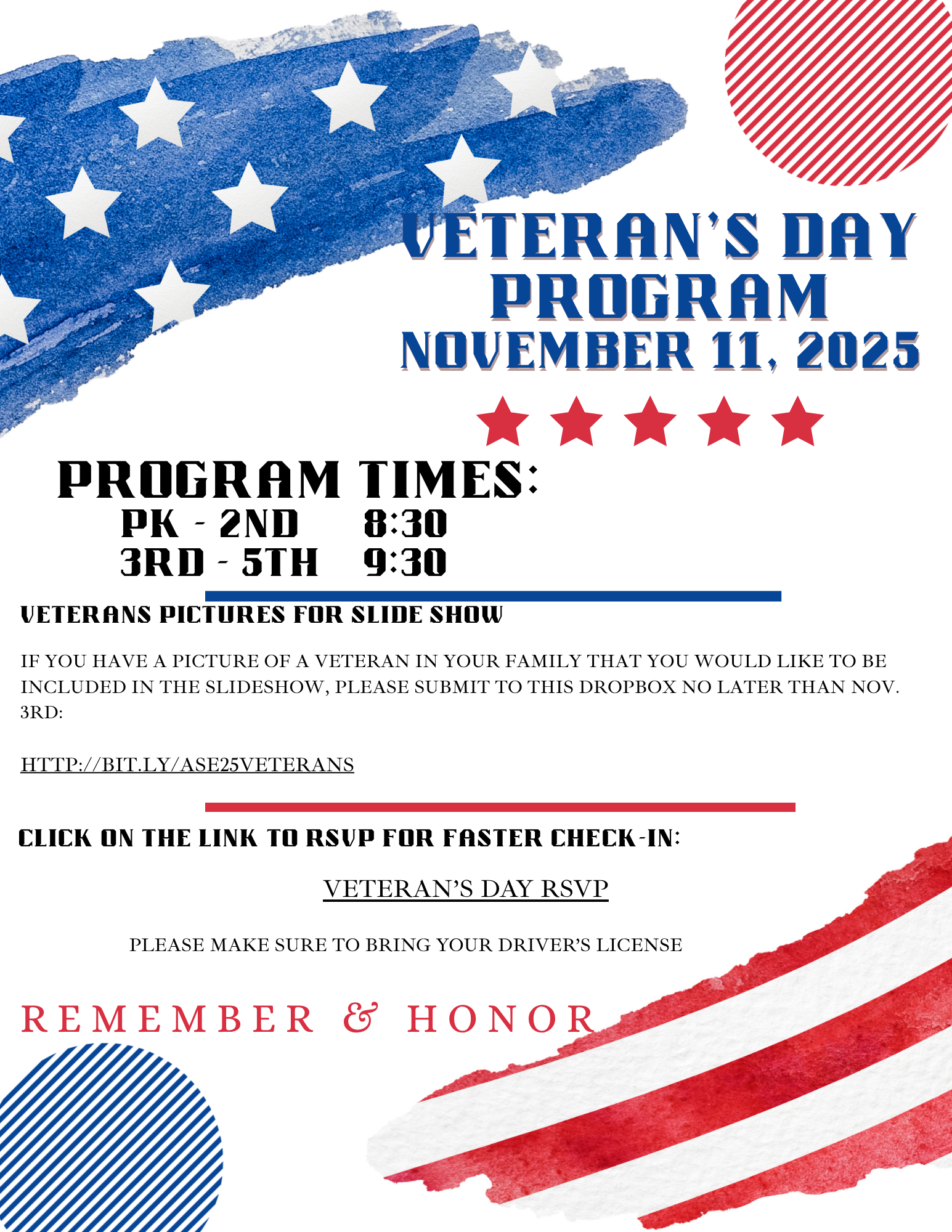 Our Veteran's program is quickly approaching. See information below: