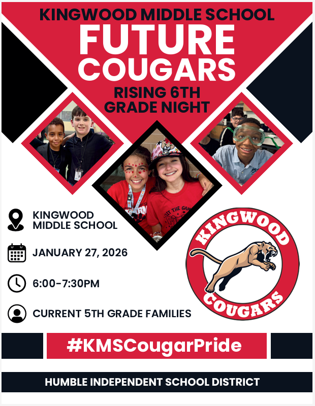 Exciting times ahead for our 5th graders! Students will take part in a Middle School Transition Field Trip on January 28th to KMS or CMS, giving them a chance to explore the campus and learn what to expect next year. Families are also invited to attend the KMS or CMS 6th Grade Parent Night on January 27, 2026! Campuses will share important information and answer questions to help make the move to middle school a smooth and confident transition.