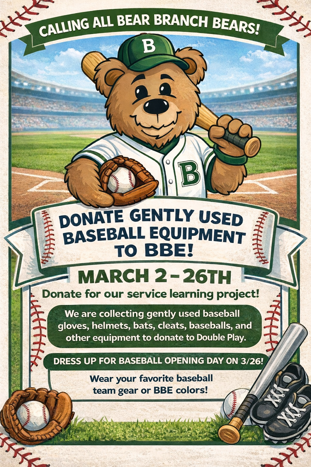 2-26: BBE Baseball Donation Drive (see flyer below)