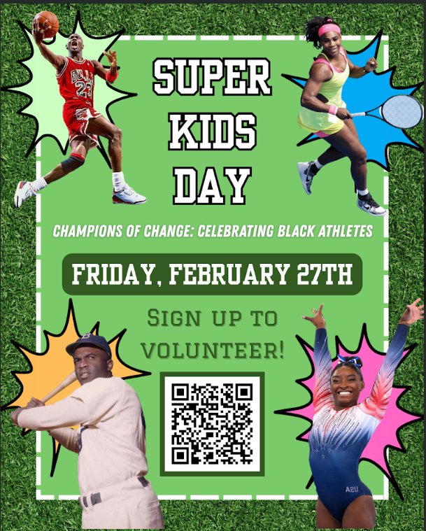Super Kids Day: Champions of Change We need YOU to help make Super Kids Day unforgettable! Join us at the Early Childhood Center as our little champions celebrate fitness and fun, inspired by Champions of Change: African American Athletes in History—your energy and smiles will help our students run, jump, and shine like true heroes!