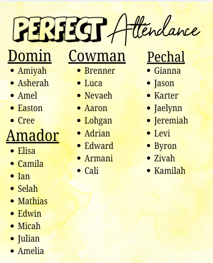 - Super Kids Day-Champions of Change(2/27)- Parent Volunteers Needed *Dates & Events Subject to Change Next Month- March - S.T.E.M under the Stars (3/11) (math and science night) - Spring Break (3/16-3/23) - Farm Animal Petting Zoo at ECC (3/25) |
