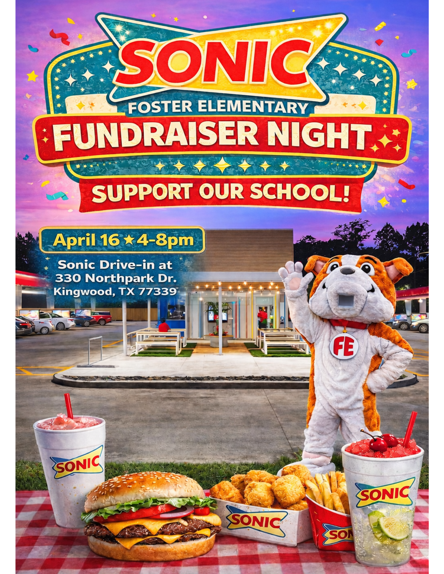April 16 4-8 PM Foster PTA Spirit Night at the Northpark Sonic from; all Foster (see flier above)