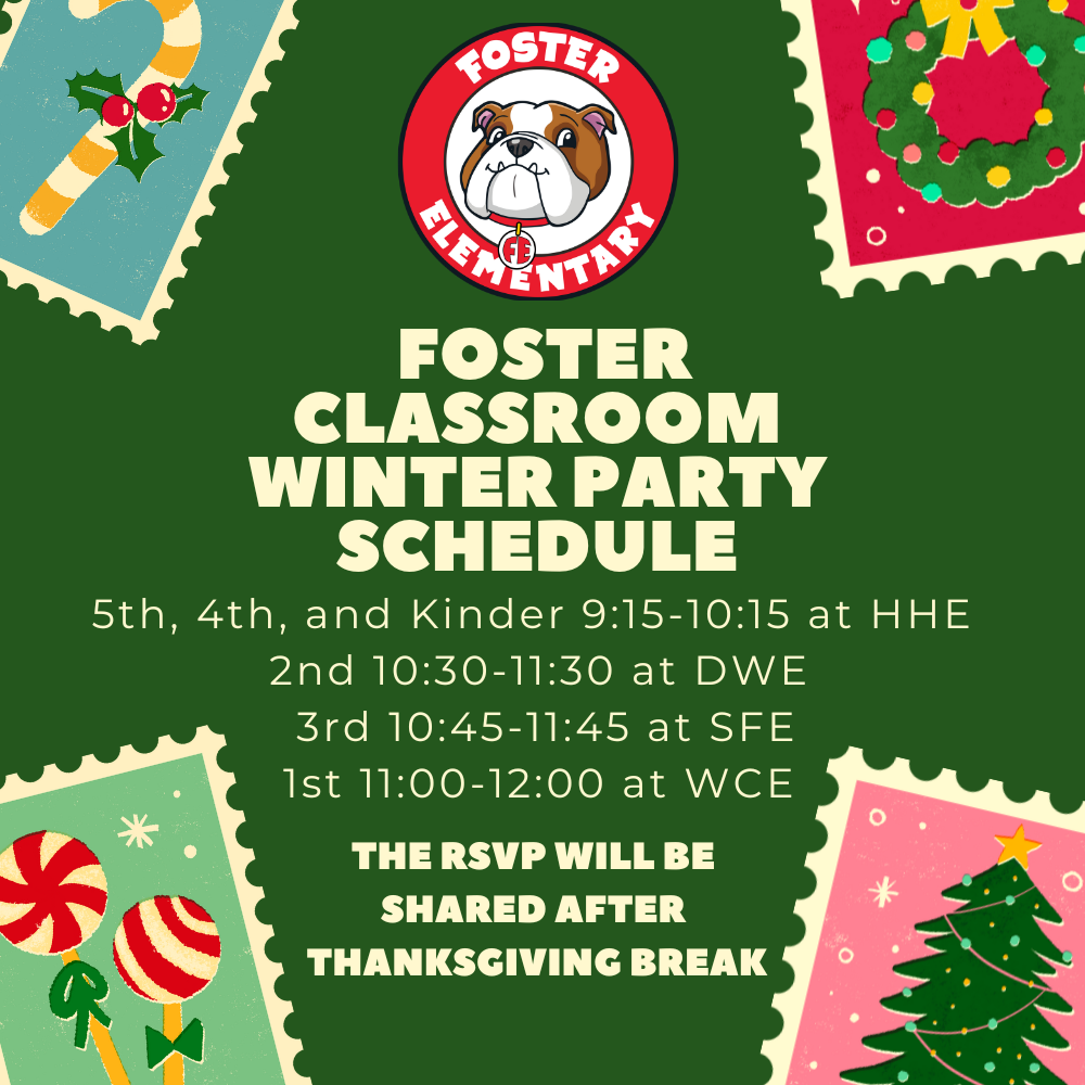 This will be a FUN Christmas night for students — supervised by the Foster PTA “Santa Sitters”! We want to make this a special memory for the kids and give parents a stress-free evening during this busy season.