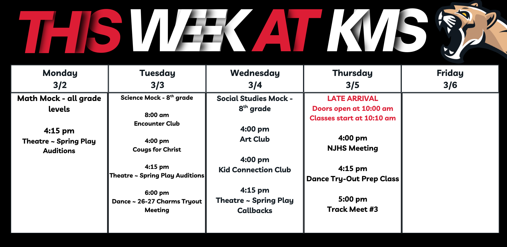 It is mandatory for all students to wear their school-issued ID cards visibly at all times while on school premises. This policy is designed to enhance the safety & security of our students and staff, while also streamlining various administrative processes within the school. We kindly request your support & cooperation in ensuring that your child wears their ID card visibly every day. If your child misplaces their ID card, they will need to purchase a temporary ID for $1 or a new ID for $5. Payments can be made at this link using Revtrack: bit.ly/KMSBadges.