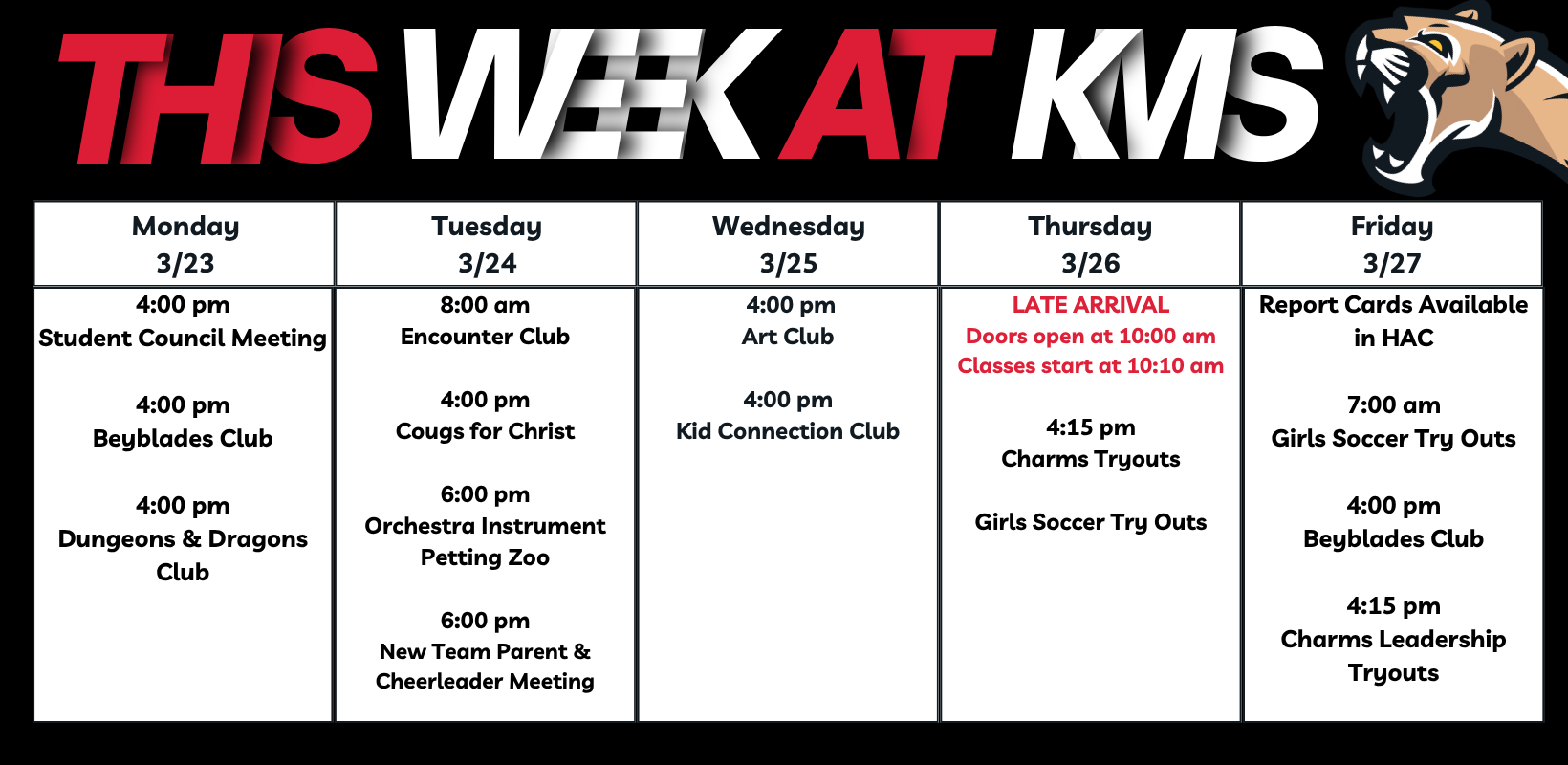 It is mandatory for all students to wear their school-issued ID cards visibly at all times while on school premises. This policy is designed to enhance the safety & security of our students and staff, while also streamlining various administrative processes within the school. We kindly request your support & cooperation in ensuring that your child wears their ID card visibly every day. If your child misplaces their ID card, they will need to purchase a temporary ID for $1 or a new ID for $5. Payments can be made at this link using Revtrack: bit.ly/KMSBadges.