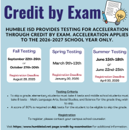 What is Credit By Examination or CBE? Texas allows students to test, in order to receive credit for a class, or to skip a grade level. These tests are provided by Texas Tech University, and are called Credit By Examination, or CBEs.