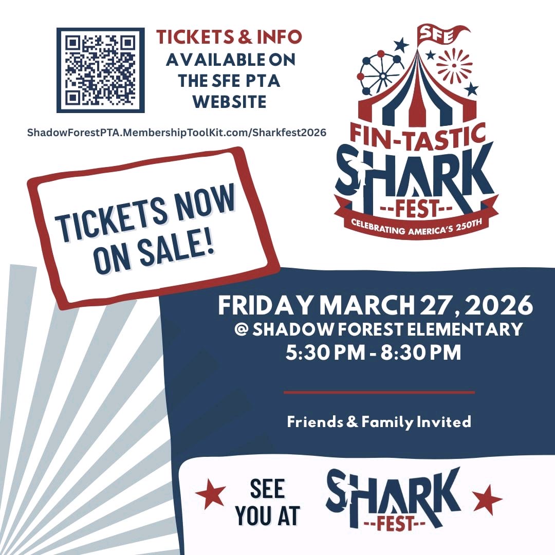 - Sharkfest information packets went home this week and ticket sales are live! Purchase carnival tickets, raffle tickets, and t-shirts here.