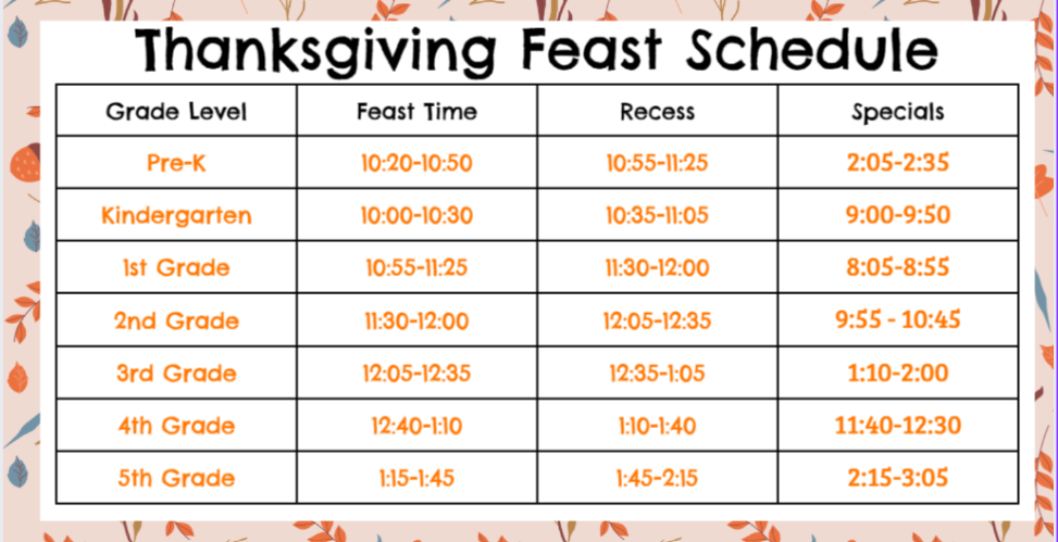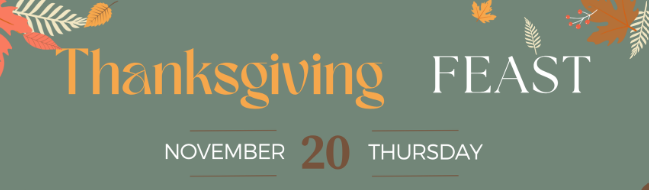 We are looking for a few volunteers to help with the Thanksgiving Feast. If you are available, please consider signing up to help. Sign up for a time not during your child's feast so you are also available to sit with your child during their feast.